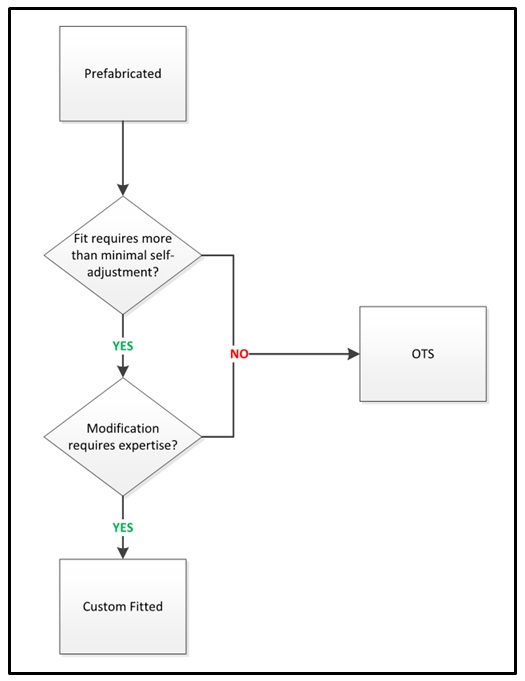 - They may or may not be supplied as a kit that requires some assembly. Assembly of the item and/or installation of add-on components and/or the use of some basic materials in preparation of the item does not change classification from OTS to custom fitted.