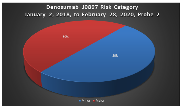 Medical Review initiated Probe review edits for providers identified through data analysis demonstrating high risk for improper payment. Providers have been offered education throughout and upon completion of the Probe 1 and Probe 2 review. Current JJ Probe 1 and Probe 2 Denosumab (Prolia) J0897 TPE Results are as follows:
