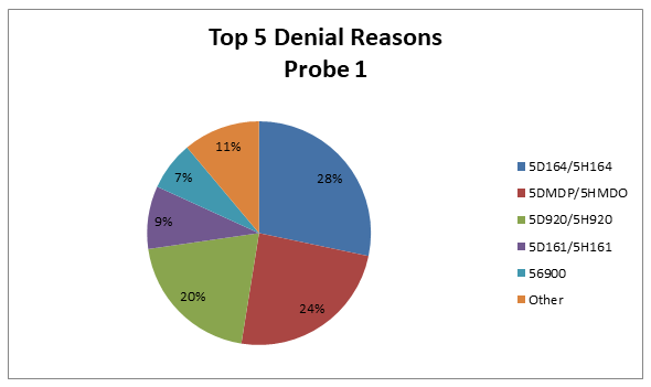 Top 5 Denial Reasons January 2, 2018, to February 28, 2020, JJ Probe 1